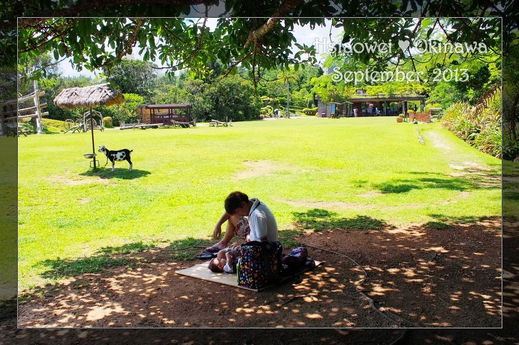 一旁還有爸爸帶著小嬰兒在樹下乘涼,超級悠閒!